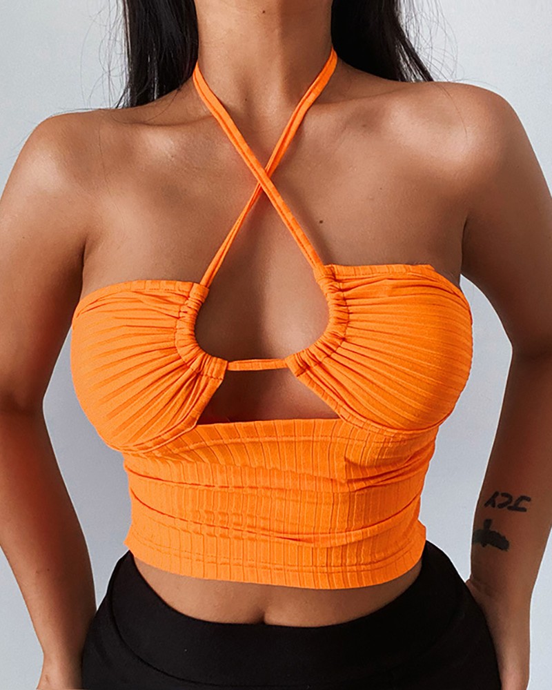 Halter Cutout Ruched Backless Crop Top