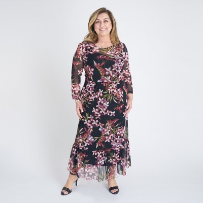 Women's Floral Mesh Ruffle A-line Dress