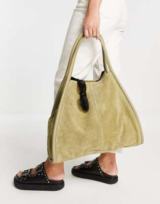 ASOS DESIGN – Tragetasche aus Wildleder in Grün mit runder Paspelierung | ASOS