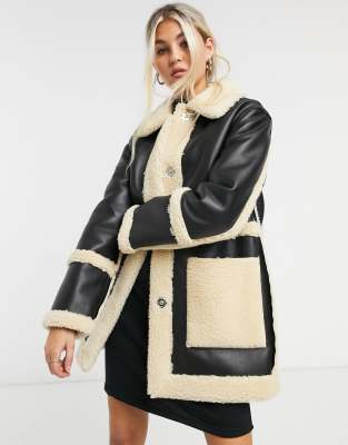 Topshop reversible borg shacket in