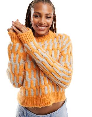Only – Pullover mit Wellenmuster in Orange und Beige und Rundhalsausschnitt