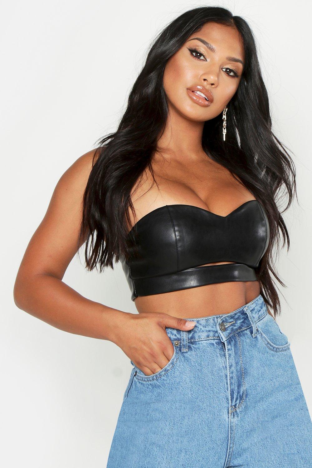 Faux Leather Bralet | boohoo